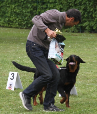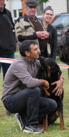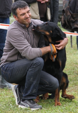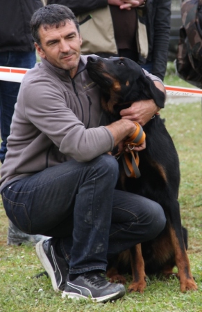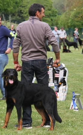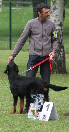 Michoco de la Cité des Comtes, avec son maître (qui vient de Belgique). Elle est la soeur de Milka, et fait aussi bien que son frère puisqu'elle remporte la classe Baby Femelle.