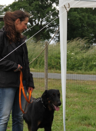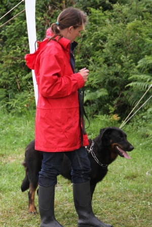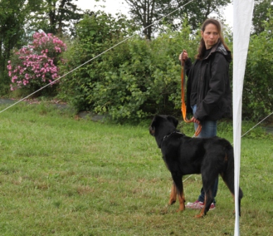 Tiens une copine, c'est Mystic, la jeune chienne de Stéphanie. Chouette, on peut jouer un peu en attendant notre tour pour passer aux épreuves.