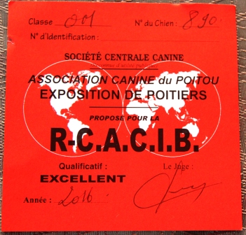 Sachez que le CACIB n'est délivré que dans les expositions internationales agréées par la F.C.I., Fédération Cynologique Internationale (Une trentaine par an en France).