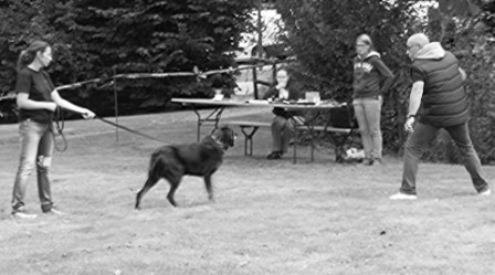 La menace / épreuve de la hardiesse : Si au coup de feu il est plus aisé d'interpréter l'émotivité du chien, traduite par des démonstrations physiques, celles-ci perdent de leur valeur à l'examen de la hardiesse qui peut révéler l'influence d'un mauvais acquis. La menace est effectuée lorsque le chien a perçu la présence de l'homme.