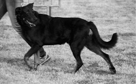 "Un très bon ensemble mais attention au caractère - DCC - tête, type et expression corrects. un peu long pour un mâle. Ossature correcte. TB aplombs et angulations mais un peu droit derrière. poil correct. fouet bien implanté.