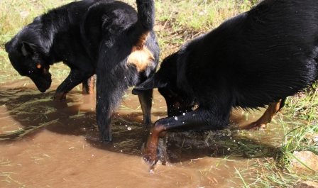 - Regarde Izel, tu tapes ta patte dans l'eau